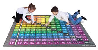 100 Square Multiplication Grid Carpet - specially designed with Key Stage 1 Numeracy Curriculum in mind. Ideal for group maths activities, supporting times table and group learning. Designed to encourage learning through interaction and play. The carpet has an anti-slip safety backing, tightly bound edges to prevent fraying, is stain resistant and easy to spot clean, and meets all relevant safety and fire standards.