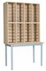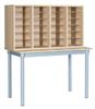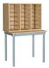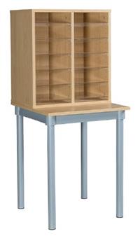 12 Space Pigeon Hole Unit with Table, with 12 horizontal pigeon hole spaces and mounted on a sturdy table with metal post legs. These robust units make ideal furniture for school classrooms, for staff rooms, reception areas, for the office or for post room storage. A fantastic letter sorter for the mailroom which can also be used to store stationery, paperwork, etc. Each pigeon hole shelving unit comes fully assembled, and is available in a durable, wipe-clean, laminate finish in a choice of 5 colours. The shelves are clear acrylic and come with a front label holder. Pigeon holes are preset but are fully adjustable to create different size openings. UK manufactured and comes with a 5 year manufacturer guarantee.