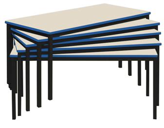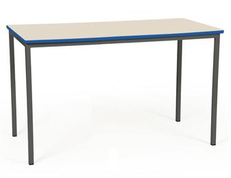 1500w x 600d Rectangular Classroom Table - PU Edge, with robust 25mm fully welded square section frame, and with laminated top in a range of colours and a hardwearing PU edge in a choice of 3 colours. This longer than normal table may be required in a number of classroom settings where a standard sized table proves to be too short. Available in 6 heights, these tables can suit all age groups and are used throughout school classrooms in the UK. The steel frame is available in a choice of several different Epoxy powder coated frame colours. Tables stack to a recommended 6 high. UK manufactured and come with a 5 year guarantee. (For associated tables in the same range with matching frame and edge type, see Related Products).