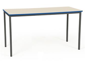 1800w x 600d Rectangular Classroom Table - PU Edge, with robust 25mm fully welded square section frame, and with laminated top in a range of colours and a hardwearing spray PU edge which is available in a choice of 3 colours. This longer than normal table may be required in a number of settings where a standard sized table proves to be too short. Available in 6 heights, these tables can suit all age groups and are used throughout school classrooms in the UK. The steel frame is available in a choice of several different Epoxy powder coated frame colours. Tables stack to a recommended 6 high. UK manufactured and come with a 5 year guarantee. (For associated tables in the same range with matching frame and edge type, see Related Products).