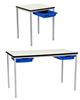 1800w x 600d Rectangular Classroom Table - PVC Edge, with robust 25mm fully welded square section frame, and with laminated top in a range of colours and a PVC edge which can be chosen to match the laminate top, or create a contrasting colour to the chosen top colour. This longer than normal table may be required in a number of settings where a standard sized table proves to be too short. Available in 6 heights, these tables can suit all age groups and are used throughout school classrooms in the UK. The steel frame is available in a choice of several different Epoxy powder coated frame colours. Tables stack to a recommended 6 high. UK manufactured and come with a 5 year guarantee. (For associated tables in the same range with matching frame and edge type, see Related Products).