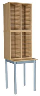 24 Space Pigeon Hole Unit with Table - Tall, with 24 horizontal pigeon hole spaces and mounted on a sturdy table with metal post legs. These robust units make ideal furniture for school classrooms, for staff rooms, reception areas, for the office or for post room storage. A fantastic letter sorter for the mailroom which can also be used to store stationery, paperwork, etc. Each pigeon hole shelving unit comes fully assembled, and is available in a durable, wipe-clean, laminate finish in a choice of 5 colours. The shelves are clear acrylic and come with a front label holder. Pigeon holes are preset but are fully adjustable to create different size openings. UK manufactured and comes with a 5 year manufacturer guarantee.
