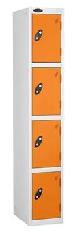 4 Door Steel locker, ideal for schools, offices, educational workshops, laboratories and research facilities, as staff lockers, for cloakrooms, warehouses, and a variety of other working environments. Each locker has a strengthener welded inside each door to increase strength and security, and each unit has a welded plinth making each compartment totally separate and increasing structural rigidity. Each door features an integral air vent system and a micro sprung disc lock with two keys or a hasp & staple lock suitable for use with padlocks (not supplied). This locker comes in 5 different sizes, with a variety of widths and depths. The locker can come as a single upright, a fixed nest of two, or a fixed nest of three. Additional nesting bolts can be purchased to connect multiple lockers together. There is a choice of 12 door colours and 3 carcass colours. Manufactured in the UK, these lockers conform to BS 4680:1996, ISO 9001:2000, and ISO 14001:2004. They come with a 7 year guarantee.