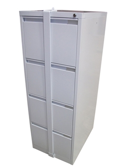 4-drawer filing cabinet with security bar, ideal for secure document storage. A padlock is required with this cabinet & is not provided. The cabinet drawers come with ball bearing slides, and with full-width flush-fronted handles, and drop in label holders on each drawer-front. The cabinets have a loading capacity of 40kg per drawer. Each filing cabinet comes with a central locking system and is supplied with two keys. A secure solution storage solution for any school, office, classroom, etc.. Available in grey, and with a 10 year guarantee.