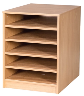 5 Bay A2 Paper Storage Unit ideal for the art room, workshop, and other storage areas. This wooden storage unit is ideal for the school classroom, artroom, office, or other storage areas in the school. Built to house artwork, large plans, and other work up to A2 size. An attractive filing storage unit that will fit well in the school environment. The unit comes fully assembed and is manufactured in a scratch resistant, wipe clean laminate in a choice of 5 wood finishes - beech, maple, oak, grey or white.