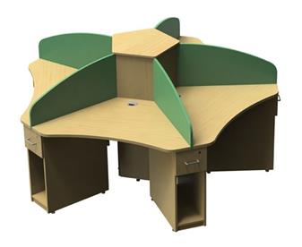 5-Person Study Booth Workstation With Screens - the main carcase is manufactured from sturdy 18mm MFC, with 25mm desktops including cable management ports, PC cabinets with top locking drawer, and coloured MFC dividing screens. Suitable for schools, colleges, offices, and for commercial environments such as call centre working. The open PC cabinets can be converted to have a lockable cupboard door with top drawer, instead of open unit with top drawer (see Optional Extras). The open PC cabinets can also be converted to 3-drawer units (see Optional Extras). The workstations and the screens are available in a range of MFC finish colours. Screens can be converted to fabric screens of the same colour as the MFC selected (see Optional Extras).