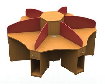 6-Person Study Booth Workstation With Screens - the main carcase is manufactured from sturdy 18mm MFC, with 25mm desktops including cable management ports, PC cabinets with top locking drawer, and coloured MFC dividing screens. Suitable for schools, colleges, offices, and for commercial environments such as call centre working. The open PC cabinets can be converted to have a lockable cupboard door with top drawer, instead of open unit with top drawer (see Optional Extras). The open PC cabinets can also be converted to 3-drawer units (see Optional Extras). The workstations and the screens are available in a range of MFC finish colours. Screens can be converted to fabric screens of the same colour as the MFC selected (see Optional Extras).