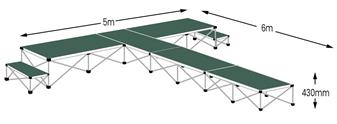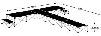 Note: This stage package is sold as standard with 400mm high risers to create a 430mm high stage. If you require this floor area with an alternative height stage, please contact the office to request a quote.