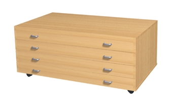 A1 Mobile 4 Drawer Plans Chest, ideal for the art room, workshop, and other storage areas. This professional quality wooden storage unit is ideal for the school classroom, art room, office, or other storage areas in the school. Built to house artwork, large plans, and other work up to A1 size. An attractive filing storage unit that will fit well in the school environment. The unit comes fully assembled and is manufactured in a scratch resistant, wipe clean laminate, and the drawers with metal runners. It comes with the option of 5 wood finishes - beech, maple, oak, grey & white. Static unit without wheels also now available.