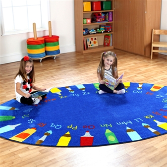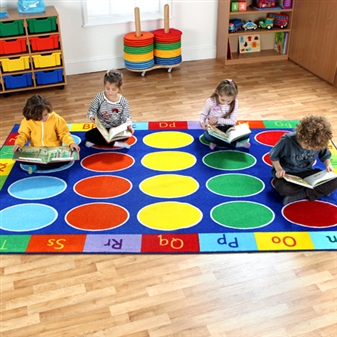 Large play & learn alphabet carpets. Suitable for nursery school, pre-school, play school, and early years and recommended for classrooms and soft reading/play areas. Designed with National Curriculum Literacy relevance in mind, these come as heavy pile carpets, while the A-Z Carpet is a durable loop nylon carpet. All the carpets have a stain-resistant coating and are washable, with bound edges to prevent fraying. They meet all relevant safety and fire standards.