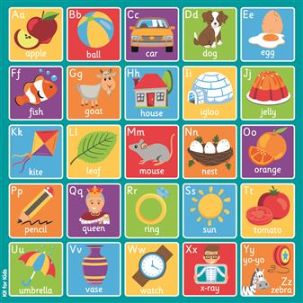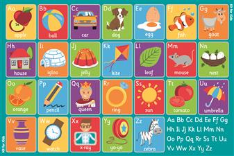 Large play & learn alphabet carpets. Suitable for nursery school, pre-school, play school, and early years and recommended for classrooms and soft reading/play areas. The carpets include the 3m x 2m Alphabet Rug, the Alphabet Mini placement Rugs + holdall (26 x square alphabet rugs ideal for temporary classroom floor soft seating activities) and the A-Z Carpet. Designed with National Curriculum Literacy relevance in mind, the Alphabet Rug and the Alphabet Mini Placement Rugs come as heavy pile carpets, while the A-Z Carpet is a durable loop nylon carpet. All the carpets have a stain-resistant coating and are washable, with bound edges to prevent fraying. They meet all relevant safety and fire standards.