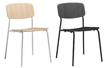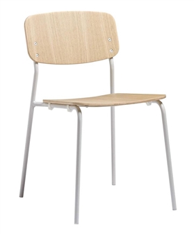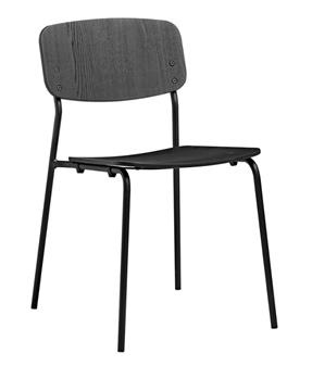 Anton Side Chair, functional and minimalistic, made for indoor contract use. Suitable for dining and canteen areas, breakout areas. The Anton Side Chair comes with an ash plywood seat and back which is clear lacquered, and comes in 3 colours - grey ash with black powder-coated frame, clear ash with white powder-coated frame, and black ash with black powder-coted frame. The chairs can stack up to 6 high, and come with a 1 year manufacturer's guarantee.