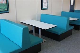 Ava Booth Seating - Vinyl - offering the perfect solution for a variety of environments including receptions, classroom reading areas, breakout areas and more. The modular units come as single or double back seats, left hand return or right hand return on single and double booths. Many seating configurations available as they can be used as individual breakout areas for dining, or combined single seats against a wall. The seating units are available in a wide choice of vinyl colours and come with a 5 Year manufacturer guarantee. Ava Dining Tables can be added to create a booth (see Related Items).