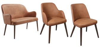 Aztec Seating In Faux Leather Upholstery, suitable for reception areas, waiting rooms, canteen area etc.. and available in a vintage cognac colour. The frame is manufactured from high quality solid beech with reinforced metal bracing to ensure optimum strength and durability. Seating is available as a side chair, armchair and two seater sofa. 1 year manufacturer's guarantee.