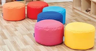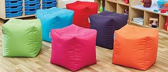 Indoor & Outdoor Bean Bags - sets of 6 available in a range of sizes and shapes and they are upholstered in a robust and long lasting showerproof fabric. Suitable for indoors and outdoors and perfect for taking the classroom outside. They are available in a range of bright and bold colours. Each bean bag has an inner bag to prevent any loss of filling. Larger bean bags are designed to be perfectly ergonomic. These bags are suitable for all age groups. Perfect to mix and match colours and sizes to create a wide range of seating, and great for working in small groups.