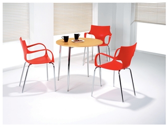 Next day delivery beech 4 leg cafe/bistro table, suitable for canteen areas, cafe or leisure settings, eating areas, breakout areas, restaurant areas etc.. The table has a durable, wipe-clean surface, and attractive chrome legs. Ideal furniture for schools, restaurants, cafes, bistro areas, public sector organisations etc.. A multi-purpose table available at short notice with next day delivery.