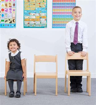 Beech Stacking Chairs, made from the finest European solid beechwood, come in 3 heights, for nursery, pre-school and primary school ages. Ideal classroom furniture for early years education environments. The chairs are CE marked and therefore meet health, safety and environmental standards. They chairs are sold in sets of 4. The chairs complement the Beech Stacking Tables (see Related Items below).
