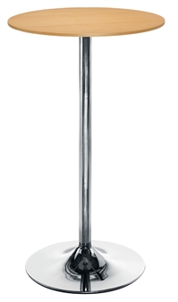 Next day delivery beech tall trumpet base cafe/bistro table, suitable for canteen areas, cafe or leisure settings, eating areas, breakout areas, restaurant areas etc.. The table has a durable, wipe-clean beech surface, and an attractive heavy-duty chrome trumpet-shaped base. Ideal furniture for, restaurants, cafes, bistro areas, public sector organisations etc.. An attractive cafe table available at short notice with next day delivery.