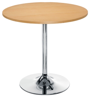 Next day delivery beech trumpet base cafe/bistro table, suitable for canteen areas, cafe or leisure settings, eating areas, breakout areas, restaurant areas etc.. The table has a durable, wipe-clean beech surface, and an attractive heavy-duty chrome trumpet-shaped base. Ideal furniture for schools, restaurants, cafes, bistro areas, public sector organisations etc.. A multi-purpose table available at short notice with next day delivery.