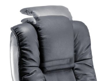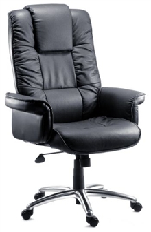 Black Leather Executive armchair with 'soft fill' leather faced seat and back cushions. The chair comes with large padded 'gull wing' armrests and a height adjustable headrest. The chair features a gas seat height adjustment and reclining function with adjustable tension control. Ideal seating for the office, or for other working areas.