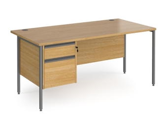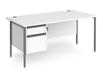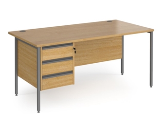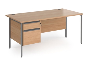 The desks have 25mm worktops, modesty panels, attractive H-frame design legs in graphite grey, port holes for computer cabling, and height adjustable feet. The drawer units come with full-width finger-pull handles, and are fully locking. The 2-drawer pedestal has one shallow drawer and one filing drawer which accepts both A4 and foolscap files, while the 3-drawer pedestal has three shallow drawers. The drawer unit can be fitted on the left hand or right hand side. The desk comes in beech, oak, or white and comes with an 8 year guarantee.