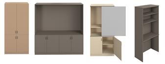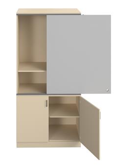 Build Your Own Teacher Storage Wall - with five components you can mix and match to create the learning and storage wall to suit your needs. Five Components - Tall Media Cupboard is a versatile cupboard to use with laptops and additonal storage below, Shelving Unit With Desk is an open unit with an integrated desk, Sliding Door Media Unit has a sliding whiteboard with an area behind for multiple uses and cupboard storage below, Screen & Storage Unit allows for a large media screen (not included) and additional lockable cupboards below, and the Media Tray Unit allows for a media screen (media screen not included) and 42 trays in a variety of colours (Please see related items for this unit). All the cupboards come with keyed locks. Designed for teachers and their classrooms, these storage walls create an ordered room with efficient space for storage. The storage wall contains numerous storage cupboards & shelving in 18mm MFC thickness. Full installation service from the manufacturer is included (approximate installation time 1 day). 5 year component guarantee.