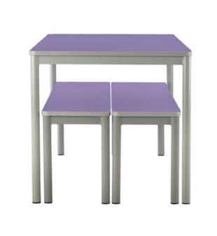 Centro Dining Table & Bench Sets are designed with educational environments in mind, and are available in heights ranging from nursery up to adult size so are suitable for all school ages. The Centro dining set comprises of two benches and a table, and the table and bench tops are manufactured in a choice of 6 laminate colours - wipeaple, easy to clean and maintain. The 40mm fully welded underframe is supplied in light grey and table edges are supplied with a light grey PVC edge. The benches can store underneath the table for a tidy environment. Perfect for all school environments and public areas such as canteens and dining areas.