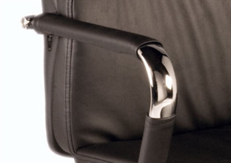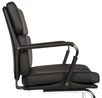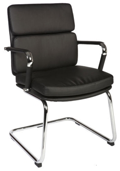 Retro Eames style visitor chair upholstered with supple faux leather and soft sit cushions, in black. The chair comes with a chrome cantilever frame. It comes finished with bright chrome armrests and additional removeable arm covers. Ideal seating for the office, visitor or reception area, for the meeting or boardroom, or for other working areas.