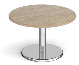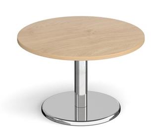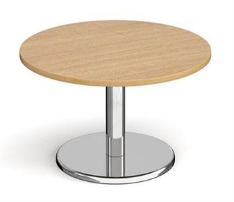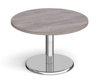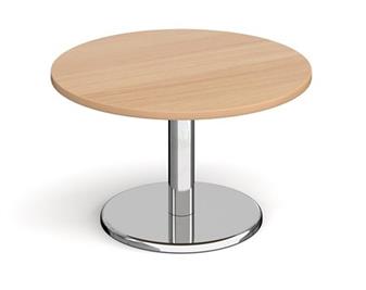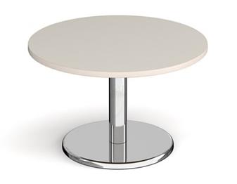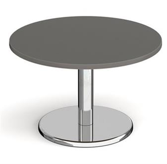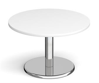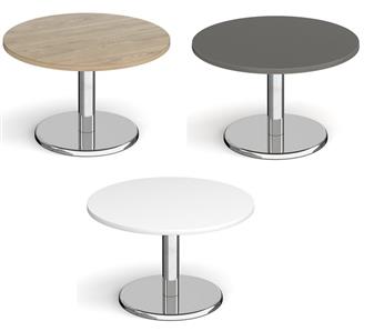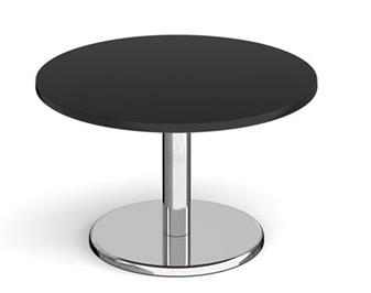 Chrome Round Base Coffee Table - Round, for breakout, bistro, bar and canteen areas. It features a heavy chrome base and column with 800mm diameter table top in a variety of top colours. The table is ideal for breakout, bistro and bar areas and a variety of cafe type environments. It requires simple assembly and comes with a 2 year guarantee. Matching coffee and poseur tables also available - see related items.