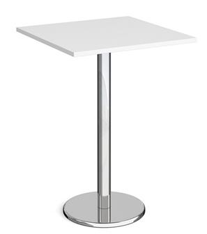 Chrome Round Base Cafe/Bistro Table - Tall Square, for breakout, bistro and canteen areas. The table comes 1-2 day delivery. It features a heavy chrome base and column, and 800mm x 800mm square table top in a variety of top colours. The table is ideal for breakout, bistro and bar areas and a variety of cafe type environments. It requires simple assembly and comes with a 2 year guarantee.