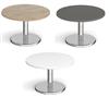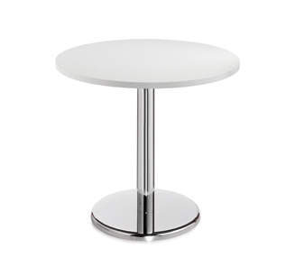 Chrome Round Base Cafe/Bistro Table - Round, for breakout, bistro and canteen areas. It features a heavy chrome base and column with 800mm diameter table top in a variety of top colours. The table is ideal for breakout, bistro and bar areas and a variety of cafe type environments. It requires simple assembly and comes with a 1 year guarantee. Matching coffee and poseur tables also available - see related items.