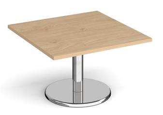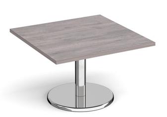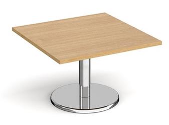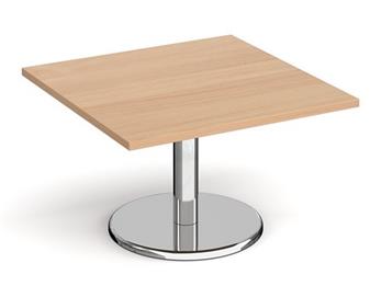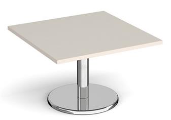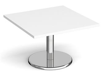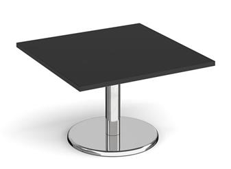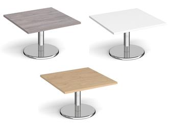 Chrome Round Base Coffee Table - Square, for breakout, bistro and canteen areas. The table comes 1-2 day delivery. It features a heavy chrome base and column, and 800mm x 800mm square table top in a variety of top colours. The table is ideal for breakout, bistro and bar areas and a variety of cafe type environments. It requires simple assembly and comes with a 2 year guarantee.