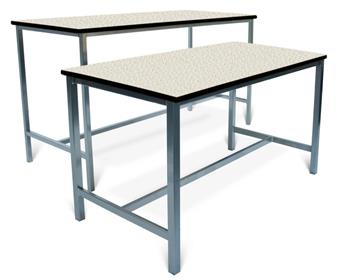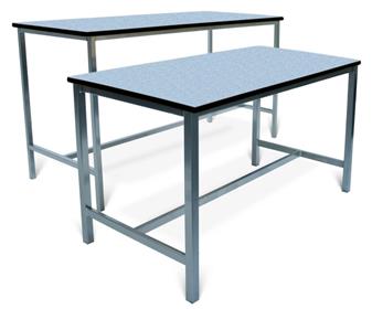 H-Frame craft or science tables with chunky 40mm square tube frame, and heat/chemical resistant Trespa top. These tables are ideal in science classrooms, labs, food tech environments, etc. The square tube frame can come in a range of colours, and the Trespa top comes in a choice of colours. Available in 5 different heights. (Additional Trespa colours are available - contact the office for further details.)