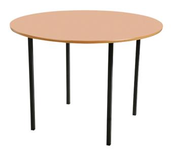 Circular School Tables - MDF Edge, in two sizes: 600mm diameter or 1000mm diameter. The table comes with robust 25mm fully welded square section frame, and with laminated top in a range of colours and a bullnose MDF edge. The tables can be matched with other tables in the same range (see Related Items), or can stand alone. Available in 6 heights, these tables are used throughout school classrooms in the UK. The steel frame is available in a choice of several different Epoxy powder coated frame colours. UK manufactured and comes with a 5 year guarantee. (For associated tables in the same range with matching frame and edge type, see Related Products).