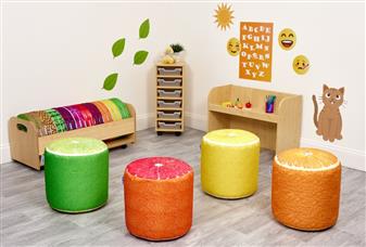 The Pods are upholstered in a high quality polyester and filled with beans allowing the seat to shape around the childs body and provide maximum comfort. Each soft seat pod is lightweight and portable giving the children the option to move around to work independently or in groups. The photorealistic graphics have been designed to prompt discussion around foods. Suitable for nursery school, pre-school, play school, primary school, these seat pods will bring added colour and fun seating to any school classroom.