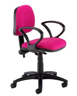 Classic Operator Plus Chair - available in a either mid-back or high-back models, and with the functionality to allow you to set the tilt of your seat and back rest to suit. The chair has a deep cushioned seat and an easy lift back-height adjustment and comes without arms, with fixed arms or with adjustable arms, and with a black base as standard. The chairs come in a wide choice of fabric colours. Optional extras available are polished aluminium base, seat slider and inflatable lumbar support. Ideal in any school office, classroom, or meeting room. If you are looking for a visitor chair to match, see Related Items.