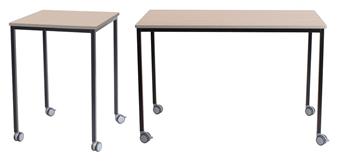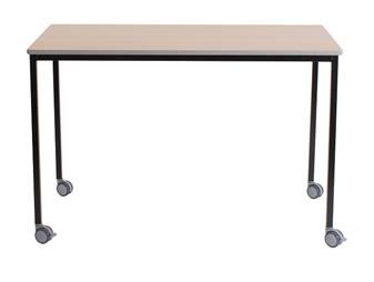 Classroom Tables With Castors - PU Edge, with robust 25mm fully welded square section frame. The tables come with high pressure laminated tops in a range of colours and with a water and chemical resistant Polyurea (PU) edge, available in 3 colours. The castors are 65mm with soft tyre and come as standard with 2 locking and 2 non-locking castors - please note the height of the table includes the castors. Available in 6 heights, these tables are used throughout school classrooms in the UK. The steel frame is available in a choice of several different Epoxy powder coated frame colours. UK manufactured and comes with a 5 year guarantee.