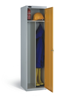 Clean and dirty locker, with two compartments for convenient seperate storage of clean and dirty workwear. Ideal for workshops, warehouses, offices, educational workshops, laboratories and research facilities, as staff lockers, and a variety of other working environments. Each locker has a full height strengthener welded inside each door to increase strength and security, and each unit has a welded plinth making each compartment totally separate and increasing structural rigidity. The locker features an integral air vent system and a micro sprung disc lock with two keys, per door. or a hasp & staple lock suitable for use with a padlock (not supplied) It comes with a double coat hook in each compartment. This locker comes in one sizes only. The locker can come as a single locker, or as a fixed nest of two. Additional nesting bolts can be purchased to connect multiple lockers together. There is a choice of 12 door colours and 3 carcass colours. Manufactured in the UK, these lockers conform to BS 4680:1996, ISO 9001:2000, and ISO 14001:2004. They come with a 7 year guarantee.