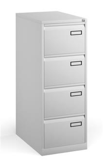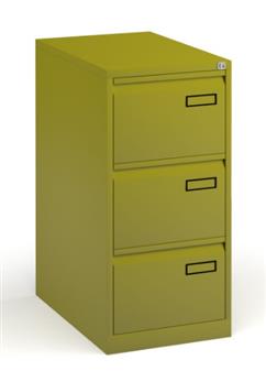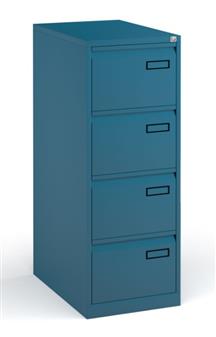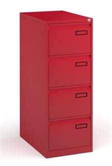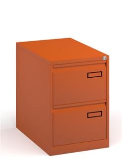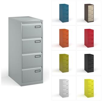 Colour Contract Filing Cabinets - 2, 3, or 4-drawer, suitable for public sector projects and contract environments including schools and educational establishments. The filing cabinets have a fully welded carcass, with high sided easy-glide drawers, full length finger pull handles, anti-tilt mechanism, and come supplied with two keys. Each drawer has a 40kg loading capacity. A necessary filing & storage solution to any school office, workshop, lab, classroom, etc.. Cabinets come in a choice of 10 colours. 10 year manufacturer guarantee.
