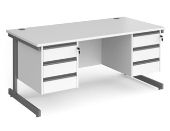 1600mm Contract C-Frame Office Desk With 2 x 3 Drawer Pedestals - WHITE