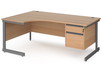 1800mm BEECH Contract C-Frame Radial Desk + Fixed 2 Drawer Pedestal - Left Hand Return