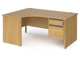 1600mm OAK Contract Panel End Radial Desk + Fixed 2 Drawer Pedestal - Left Hand Return
