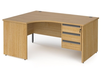1600mm OAK Contract Panel End Radial Desk + Fixed 3 Drawer Pedestal - Left Hand Return