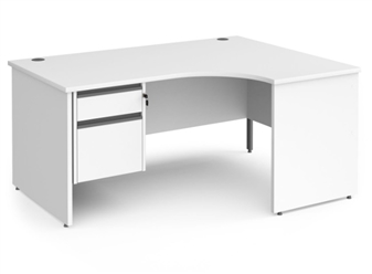 1600mm WHITE Contract Panel End Radial Desk + Fixed 2 Drawer Pedestal - Right Hand Return