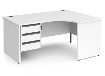 1600mm WHITE Contract Panel End Radial Desk + Fixed 3 Drawer Pedestal - Right Hand Return