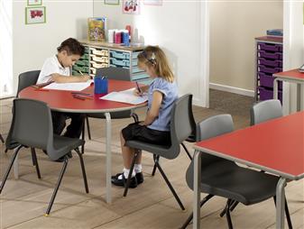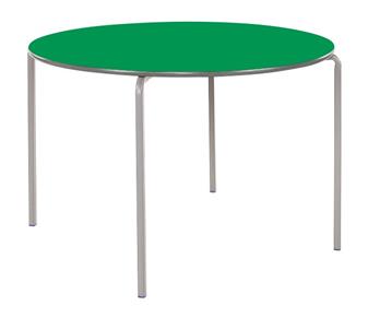Crushed-bent framed circular classroom tables with a hardwearing 18mm MDF laminated top, which comes in a range of laminate finishes. Available in 6 heights to suit ages 3 through to adult (see below). This circular table comes in 4 sizes, and will suit any school classroom, or other educational and learning environment. The table comes with a spray Duraform PU edge and on a sturdy steel frame which comes in a choice of 4 different frame colours.