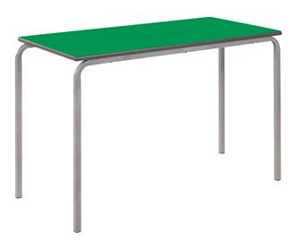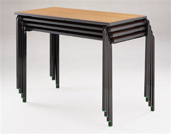 Crushed-bent framed rectangular stacking classroom tables Spray PU Edge with a hardwearing 18mm MDF laminated top, which comes in a range of laminate finishes. Available in 6 heights to suit ages 3 through to adult (see below). This table/desk comes in 3 sizes, and will suit any school classroom, or other educational and learning environment. The table comes with a Duraform PU edge, and on a sturdy steel frame which comes in a choice of 4 different frame colours. Recommended stacking 6 high. (For associated tables with matching frame and edge type, see Related Products.)