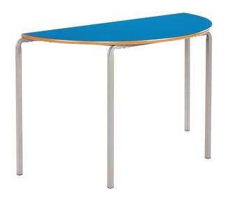 to be stacked by sliding one on top of the other. Shaped desking such as round
