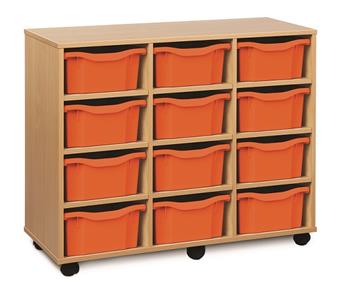Wooden 12 Double Tray Storage Mobile (3 Columns) - Tangerine Trays