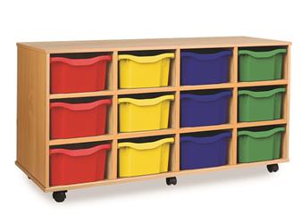 Wooden 12 Double Tray Storage Mobile (4 Columns) - Mixed Colour Trays